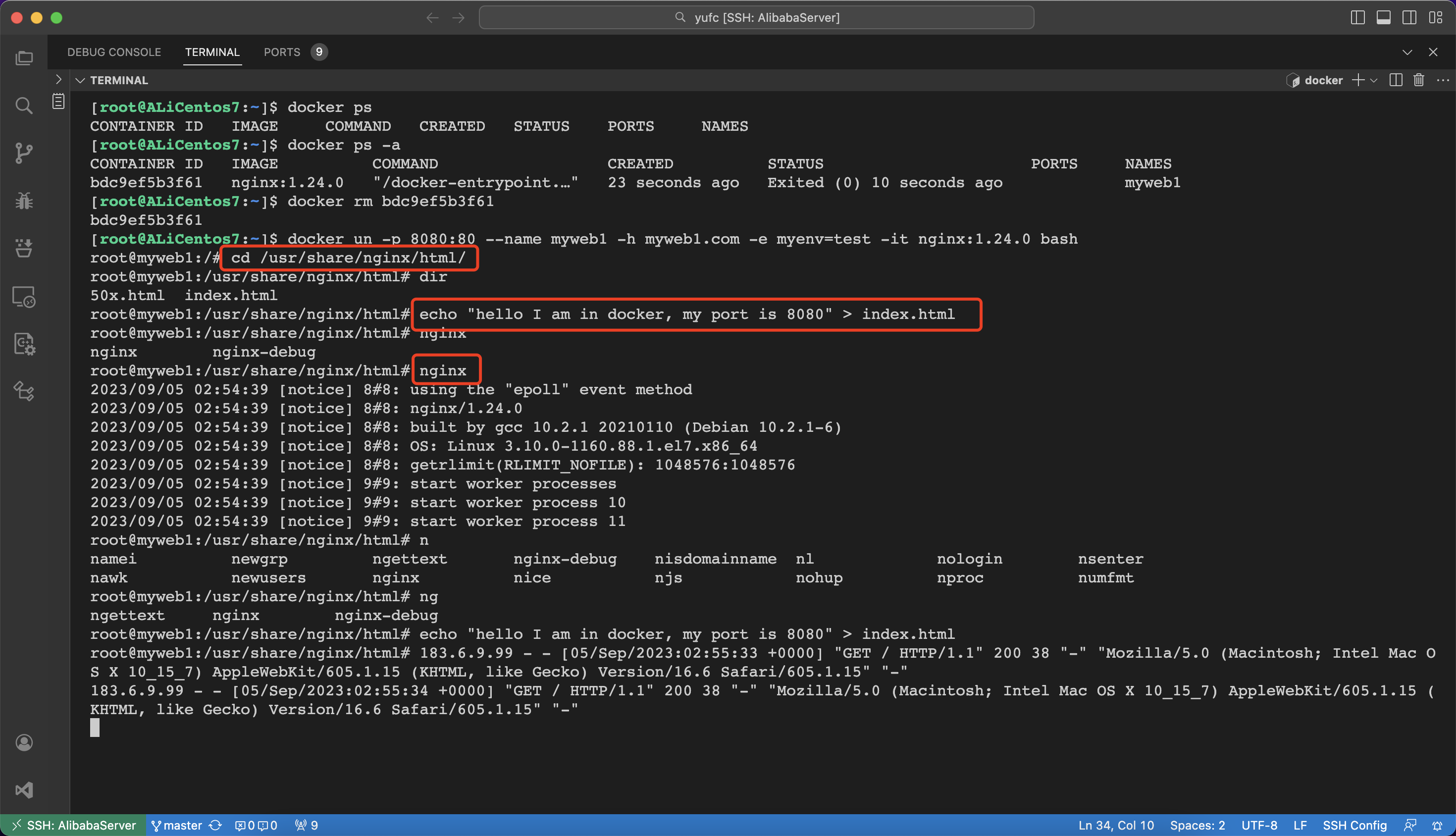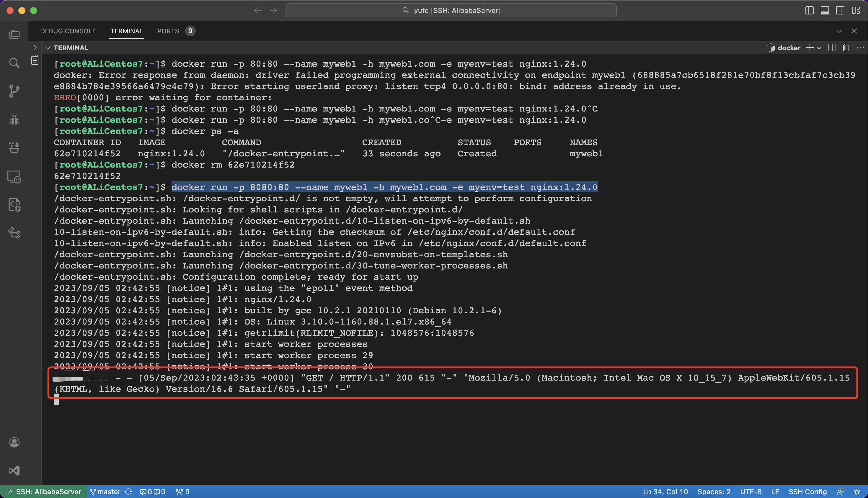 docker run -p 8080:80 --name myweb1 -h myweb1.com -e myenv=test nginx:1.24.0对外暴露8080这个端口。