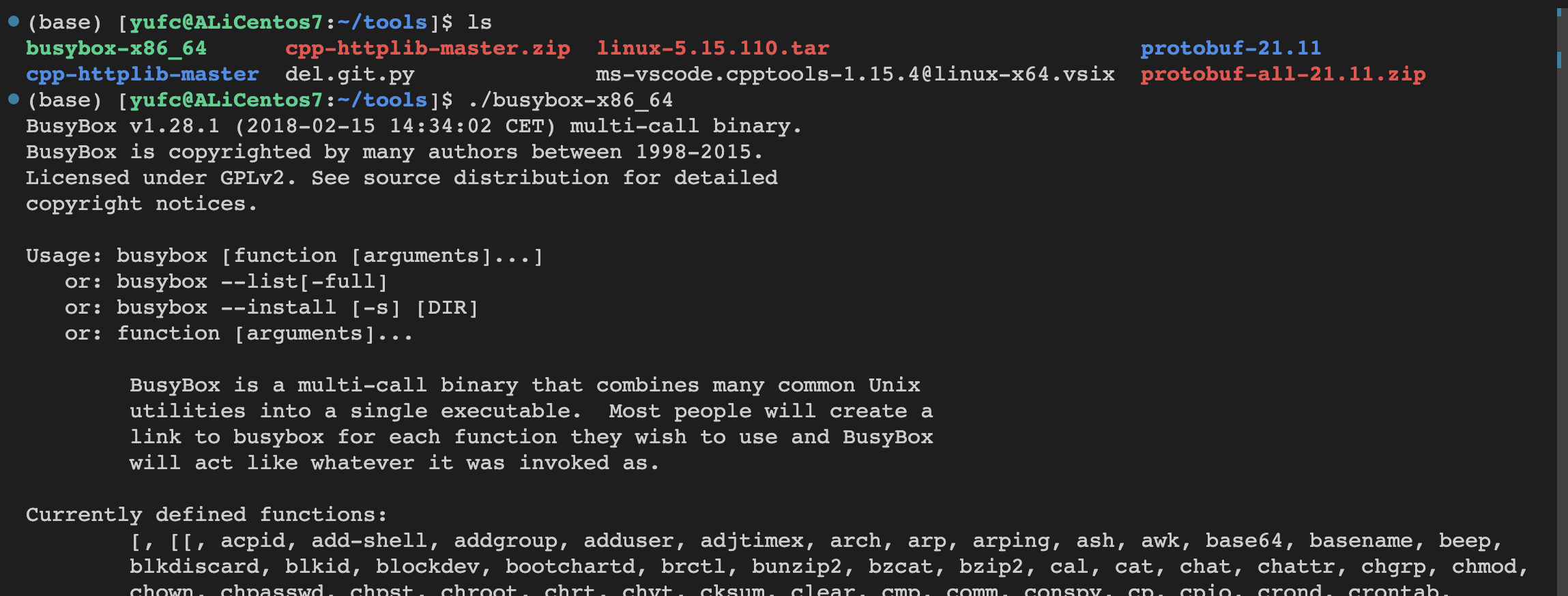 如图所示,busybox支持非常多的命令。