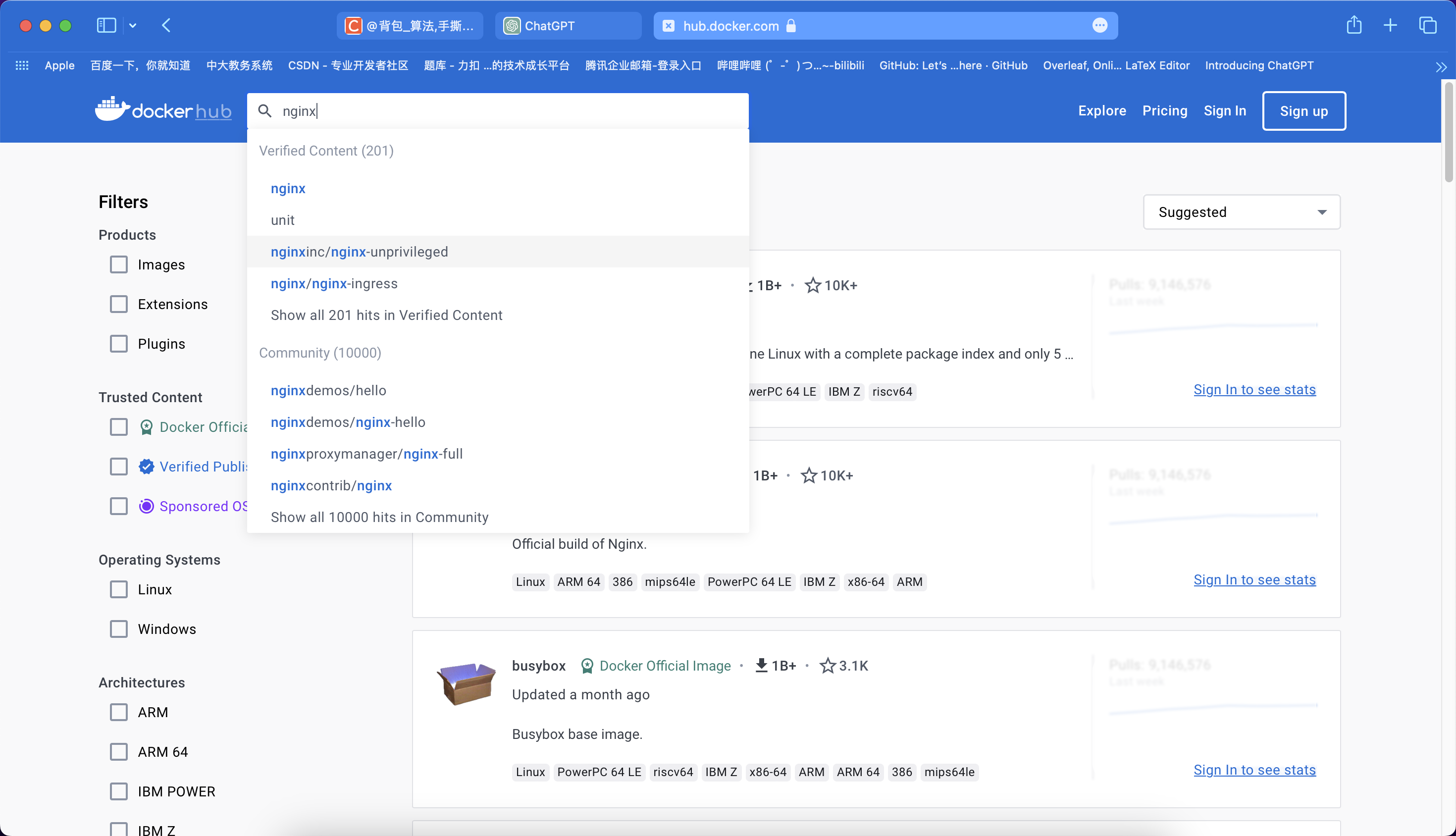 dockerhub是全球最大的镜像仓库,基本上可以说想要啥这里都有。