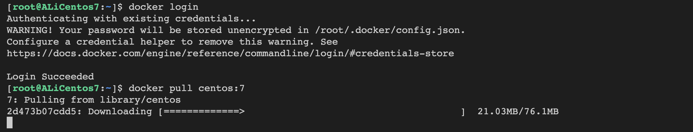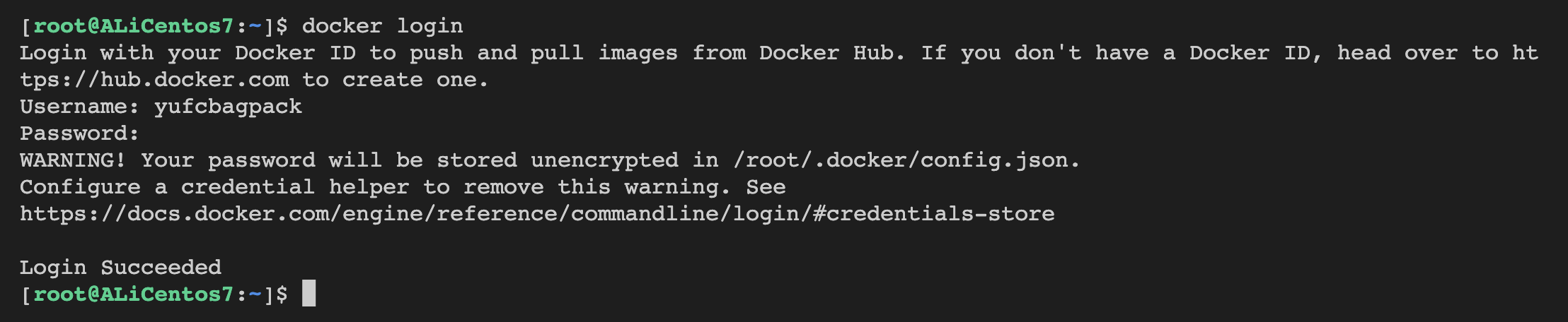 Options: -p, --password string Password --password-stdin Take the password from stdin -u, --username string Username[root@ALiCentos7:~]$第二种办法。