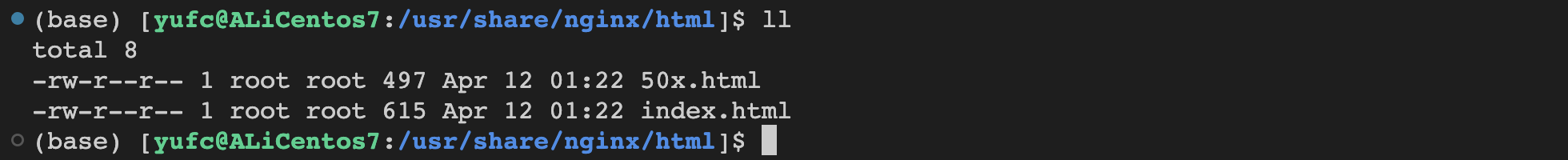 xxxxxxxxxx location / { root /usr/share/nginx/html; # 这里表示了nginx这个服务的首页 index index.html index.htm; }我们可以进这个目录看一下。