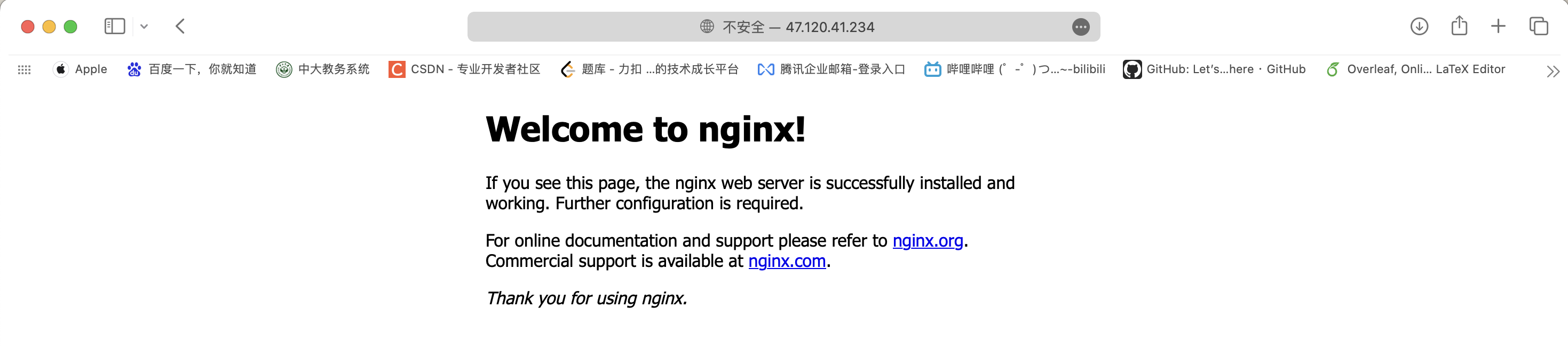 但此时这个nginx是没有启动的,我们需要在容器的bash里面手动启动一下。